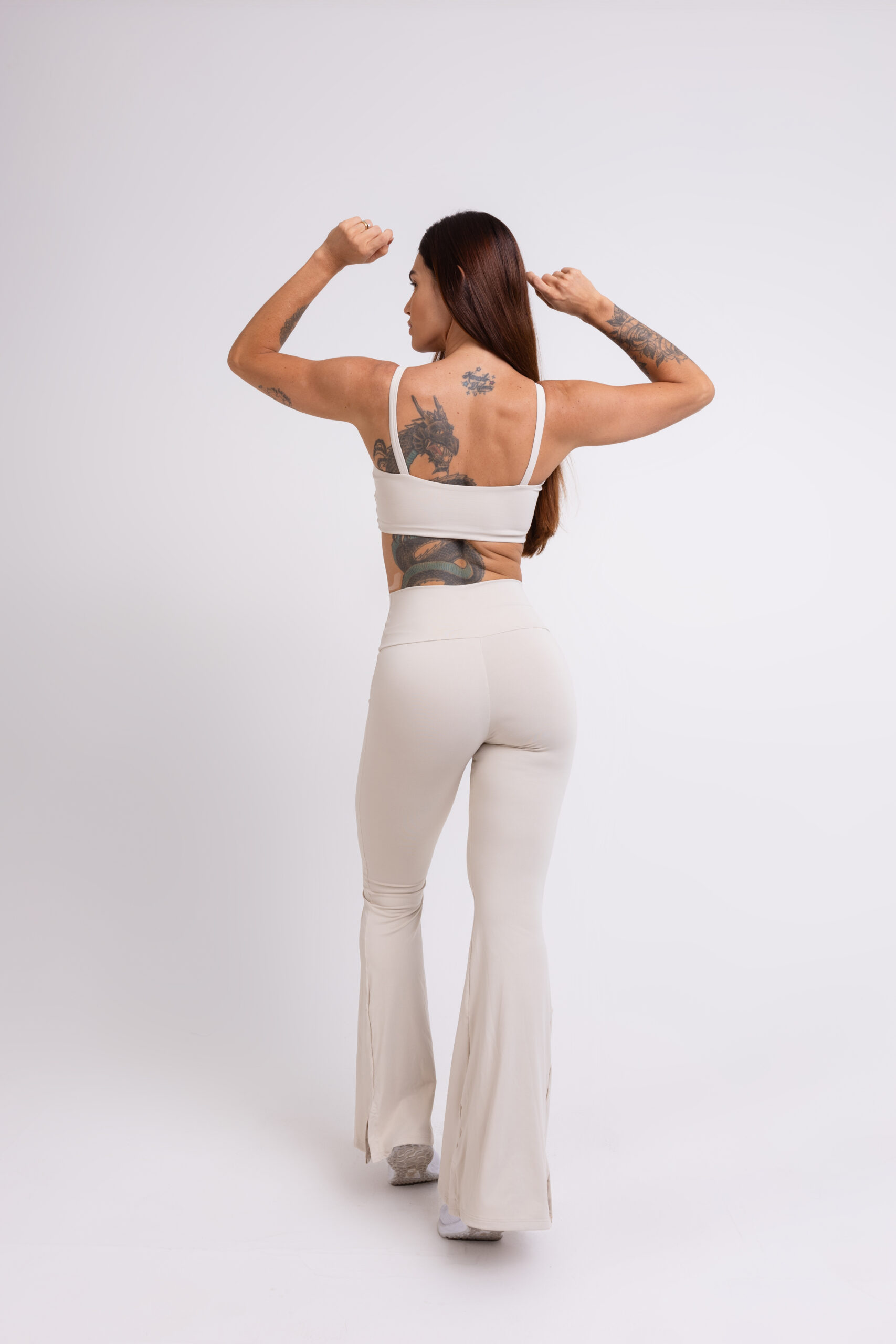 Este conjunto exala conforto e estilo, ideal para quem busca versatilidade. O Top de alças finas oferece um design minimalista com decote quadrado, enquanto a legging possui cós alto e proporciona um caimento alongado e fluído por conta da barra flare. Ambos as peças combinam perfeitamente para treinos e dia a dia
